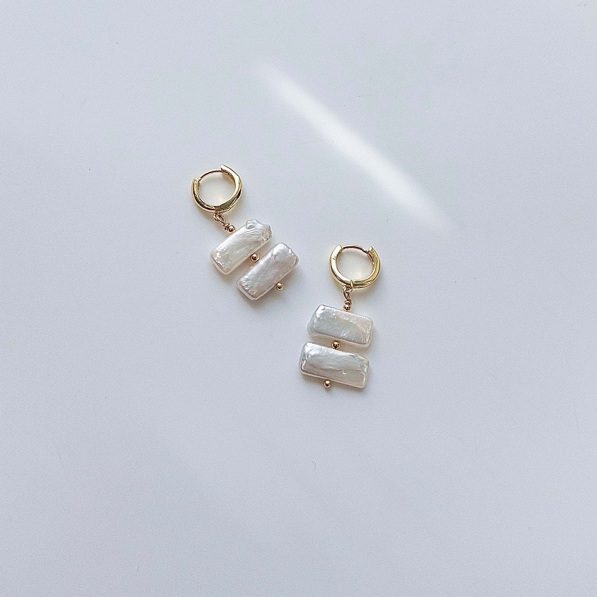 Minimal holiday elegance with a soft winter shine. The Winter Glow Earrings feature rectangular baroque freshwater pearls paired with small gold-plated hoops and tiny 3mm gold beads that add the perfect festive touch. Lightweight, chic, and designed to complement every look this season.